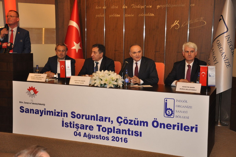 Bilim, Sanayi ve Teknoloji Bakanı Dr. Faruk Özlü, İnegöl Organize Sanayi Bölgesi’nde düzenlenen Sanayimizin Sorunları, Çözüm Önerileri İstişare Toplantısı’nda sanayici ve işadamları ile bir araya geldi.